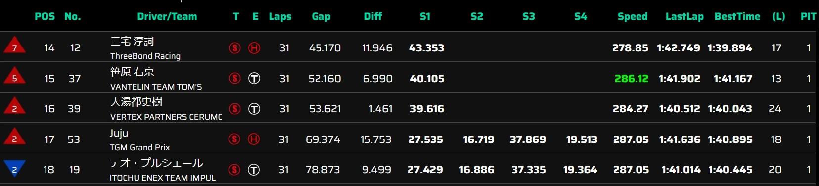 野尻との差が1分うんぬん、SCが入らなければうんぬん、そんなの本人やチームは当然把握しているし把握した上で(少なくとも今は)問題視していない